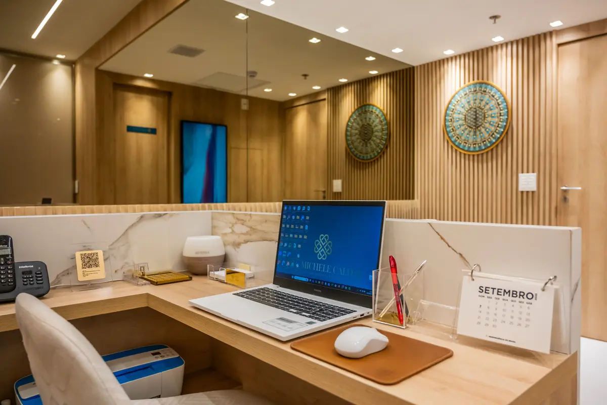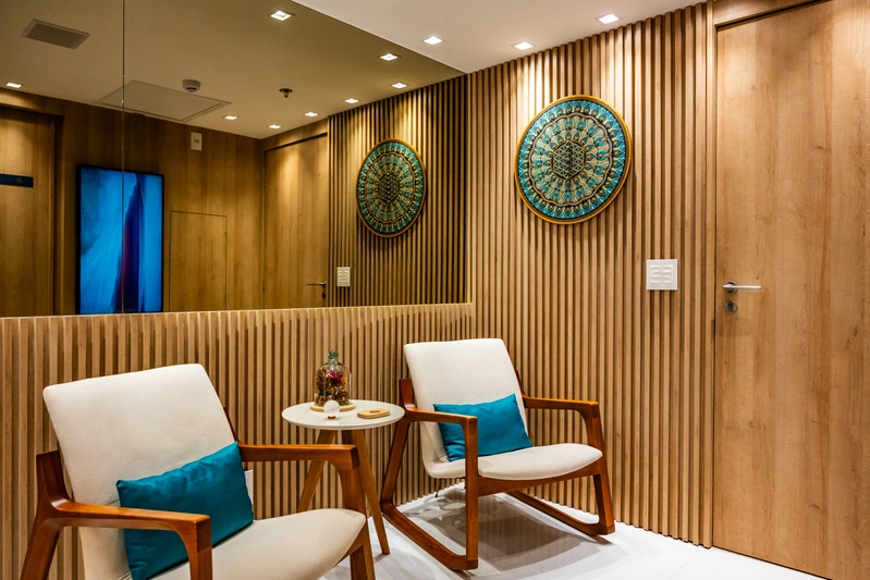 Logo na recepção, o ambiente acolhedor já convida ao relaxamento, com um café fresquinho e uma atmosfera de tranquilidade que antecede cada atendimento.