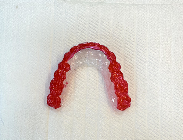 É um dispositivo rígido, temporário e personalizado, confeccionado com base no escaneamento digital da arcada dentária.